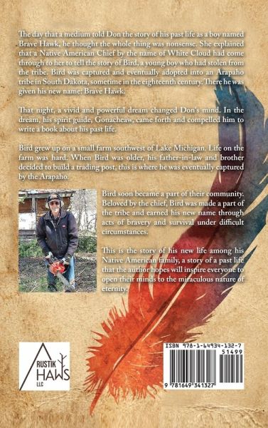 The day that a medium told Don the story of his past life as a boy named Brave Hawk, he thought the whole thing was nonsense. She explained that a Native American Chief by the name of White Cloud had come through to her to tell the story of Bird, a young boy who had stolen from the tribe. Bird was captured and eventually adopted into an Arapaho tribe in South Dakota, sometime in the eighteenth century. There he was given his new name: Brave Hawk.That night, a vivid and powerful dream changed Don's mind. In the dream, his spirit guide, Gonacheaw, came forth and compelled him to write a book about his past life. Bird grew up on a small farm southwest of Lake Michigan. Life on the farm was hard. When Bird was older, his father-in-law and brother decided to build a trading post, this is where he was eventually captured by the Arapaho.Bird soon became a part of their community. Beloved by the chief, Bird was made a part of the tribe and earned his new name through acts of bravery and survival under difficult circumstances.This is the story of his new life among his Native American family, a story of a past life that the author hopes will inspire everyone to open their minds to the miraculous nature of eternity.