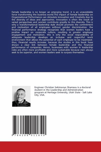 Female leadership is no longer an emerging trend, it is an unavoidable force transforming the business world.The impact of female leadership on Organizational Performance can stimulate innovation and Creativity due to the diversity of ideas and approaches. Innovation is often the result of varied perspectives and women contribute greatly to this diversity. This is why a transformational leadership style should promote the commitment and motivation of all employees without gender discrimination. the financial performance strategy recognizes that women leaders have a positive impact on corporate culture, resulting in greater employee engagement and motivation. this is why the social responsibility of adequate leadership develops an inclusive and respectful work environment that allows the potential of each employee to be maximized. thus, Financial results increase, because the studies in this book have shown a clear link between female leadership and the financial performance of companies. Hence, businesses with women in leadership roles are often more profitable and more sustainable because men always seek to be superior, and women leaders seek to surpass themselves.