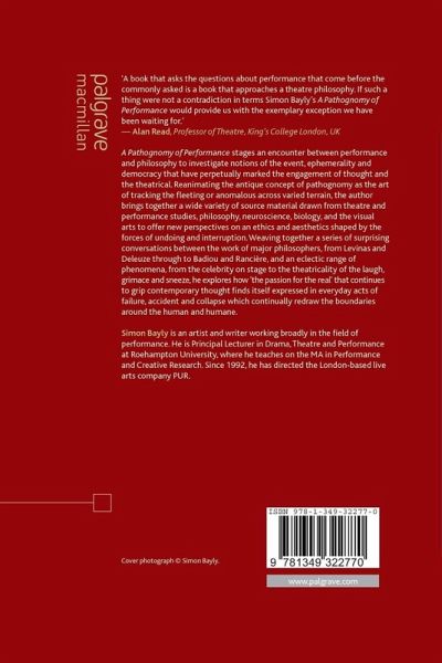 'A book that asks the questions about performance that come before the commonly asked is a book that approaches a theatre philosophy. If such a thing were not a contradiction in terms Simon Bayly's A Pathognomy of Performance would provide us with the exemplary exception we have been waiting for.' - Alan Read, Professor of Theatre, King's College London, UK