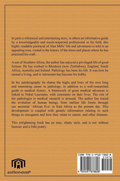 In parts a whimsical and entertaining story, in others an informative guide by a knowledgeable and much-respected professional in his field, this highly readable portrayal of Alan Mills' life and adventures is told in an appealing tone, rooted in the history of the times and places where he has practised his craft. A son of Southern Africa, the author has enjoyed a privileged life of good fortune. He has worked in Rhodesia (now Zimbabwe), England, South Africa, Australia and Ireland. Pathology has been his life. It was how he earned a living, and in retirement has become his hobby. In his autobiography he shares the highs and lows of his own long and interesting career in pathology, in addition to a well-researched guide to medical history. A framework of great medical advances is linked to Nobel Laureates, with comments on their lives. The role of the pathologist in medical research is stressed. The author has traced the evolution of human beings, from earliest life forms through our ancestral 'African Eve' in East Africa to the present day. This development is coupled with genetic information relating to such things as oncogenes and how they relate to cancer, and other diseases. This enlightening book has an easy, chatty style, and is not without humour and a little poetry.