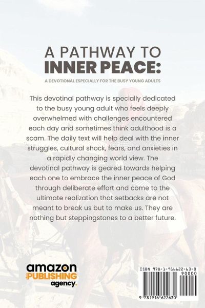 This devotinal pathway is specially dedicated to the busy young adult who feels deeply over whelmed with challenges encountered each day and sometimes think adulthood is a scam.The daily text will help deal with the inner struggles,cultural shock,fears and anxieties in a rapidly changing world view. The devotinal pathway is geared towards helping each one to embrace the inner peace of God through deliberate effort and come to the ultimate realization that set backs are not meant to break us but to make us. They are nothing but stepping stones to a better future.