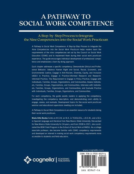 A Pathway to Social Work Competence: A Step-by-Step Process to Integrate the Nine Competencies into the Social Work Practicum helps readers learn the requirements of the nine competencies set out by the Council on Social Work Education (CSWE) and to implement them during their social work practicum experience. The guide encourages individual development of professional competence and emphasizes a learn-by-doing approach. Each chapter addresses a specific competency: Demonstrate Ethical and Professional Behavior; Advance Human Right and Social, Racial, Economic, and Environmental Justice; Engage in Anti-Racism, Diversity, Equity, and Inclusion (ADEI) in Practice; Engage in Practice-Informed Research and Research-Informed Practice; The Requirement to Engage in Policy Practice; Engage with Individuals, Families, Groups, Organizations, and Communities; Assess Individuals, Families, Groups, Organizations, and Communities; Intervene with Individuals, Families, Groups, Organizations, and Communities; and Evaluate Practice with Individuals, Families, Groups, Organizations, and Communities. For each competency, the guide assists readers in applying the competency, investigating the competency description, and demonstrating one's ability to engage, assess, and evaluate. Development topics for the social work practicum seminar and educational supervision meeting are included. A Pathway to Social Work Competence is an essential resource for students taking their social work practicum.