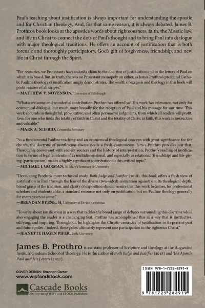 Paul's teaching about justification is always important for understanding the apostle and for Christian theology. And, for that same reason, it is always debated. James B. Prothro's book looks at the apostle's words about righteousness, faith, the Mosaic law, and life in Christ to connect the dots of Paul's thought and to bring Paul into dialogue with major theological traditions. He offers an account of justification that is both forensic and thoroughly participatory, God's gift of forgiveness, friendship, and new life in Christ through the Spirit.