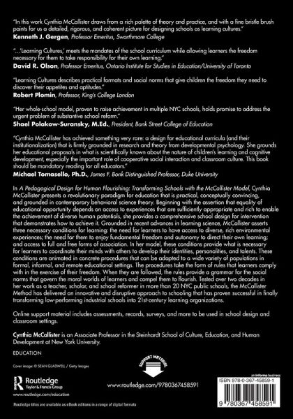 Section I: Background 1: Schooling the Possible Self: Introduction to a Learner-centered Educational Model 2: The schools we have 3: A Positive Learning Paradigm Section II: A Pedagogy for the Self 4: The McCallister Method: Program Design 5 Sparks: A Learner-facing Personalized Curriculum 6: The Cultural Capital Curriculum Section III: An Activity Curriculum: The Learning Cultures Formats 7: The Learning Environment and the Work Time Format 8: Lessons 9: The Learning Conference Format 10: The Learning Share Format 11: The Writing Conference Format 12: The Writing Share Format 13: The Pretend Play Format 14: The Cooperative Unison Reading Format 15: The Learning Teams Format 16: The Integrative Math Format 17: The Language Games Format Section IV: The "We" Curriculum: Social Norms 18: Keepers of the Culture: The Social Norms Curriculum 19: The Academic and Behavior Intervention Formats Section V: The Ecosystem Curriculum 20: Whole-school Transformation: The Ecosystem Design 21: The Assessment Program 22: The Civil Rights Program 23: The Community Education Program 24: The Curriculum Program 25: The School Culture Program 26: The Training Program Section VI: Existence Proof 27: There are learning cultures 28: Transforming a large NYC high school 29: The Urban Assembly's McCallister-Learning Cultures Initiative 30. The "Rise of the Phoenix" 31: Conclusion: Shapes