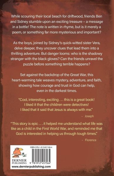 A Pennyworth of Peppermints is an exciting mystery spy story for 8-11s, set in Dorset in the First World War. While scouring their local beach for driftwood, friends Ben and Sidney stumble upon an exciting treasure - a message in a bottle! The note is written in rhyme, but is it merely a poem, or something far more important? As the boys delve deeper into the mystery, joined by Sidney's sister Vera, they uncover clues that lead them into a thrilling adventure. But danger looms: who is the shadowy stranger with the black gloves? Can the friends unravel the puzzle before something terrible happens? Set against the backdrop of the Great War, this heart-warming tale weaves mystery, adventure, and faith, showing how courage and trust in God can help, even in the darkest times. "Cool, interesting, exciting . . . this is a great book! I liked it that the children were detectives! I liked that it said that Jesus is always with me." - Joseph "This story is epic . . . it helped me understand what life was like as a child in the First World War, and reminded me that God is interested in helping us through tough times." - Florence