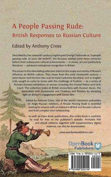 Described by the sixteenth-century English poet George Turbervile as "a people passing rude, to vices vile inclin'd", the Russians waited some three centuries before their subsequent cultural achievements - in music, art and particularly literature - achieved widespread recognition in Britain. The essays in this stimulating collection attest to the scope and variety of Russia's influence on British culture. They move from the early nineteenth century - when Byron sent his hero Don Juan to meet Catherine the Great, and an English critic sought to come to terms with the challenge of Pushkin - to a series of Russian-themed exhibitions at venues including the Crystal Palace and Earls Court. The collection looks at British encounters with Russian music, the absorption with Dostoevskii and Chekhov, and finishes by shedding light on Britain's engagement with Soviet film. Edited by Anthony Cross, one of the world's foremost authorities on Anglo-Russian relations, 'A People Passing Rude' is essential reading for anyone with an interest in British and Russian cultures and their complex inter-relationship.