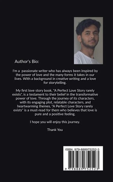 Title: ""A Perfect Love Story rarely exists"" Author: Manas Kumar Rai Genre: Romance, Drama Pages: 75 ""A Perfect Love Story rarely exists"" is a heartwarming and emotional journey of two souls who are brought together by fate and challenged by life. The story follows the lives of Emily and Jack, two individuals who come from different backgrounds and have different perspectives on love and life. Despite their differences, they find themselves falling deeply in love with each other, but their love is tested when they are faced with personal struggles and societal pressures. As they navigate through their journey, they come to understand the true meaning of love and what it means to truly love someone. The ups and downs of their relationship will have you on the edge of your seat and their love will have you reaching for the tissues. ""A Perfect Love Story rarely exists"" is a timeless tale of love and the power it holds to heal and strengthen the human spirit. It will leave you with a warm and fuzzy feeling in your heart and a newfound appreciation for the power of love.