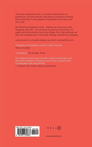 The news rocked the town. A woman's body found in a boathouse. And the woman's last known companion Missing Presumed Fled. To the people of Stansfield it's an open and shut case. But Detective Inspector Lloyd - teamed up once more with Sergeant Judy Hill - isn't so quick to jump to conclusions. To begin with he's certain of only two things. First, that nothing can stop the reawakening of his tender feelings towards his colleague. And second: in a murder enquiry you don't rule out . . .
