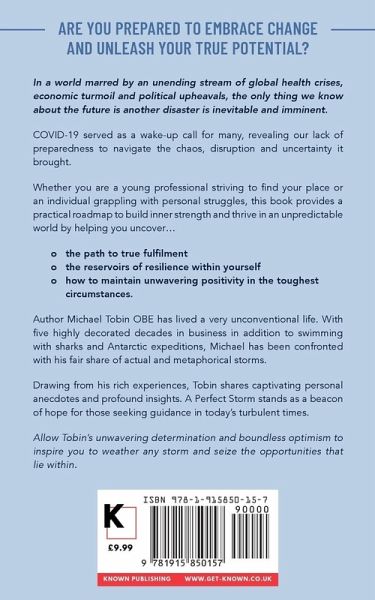In a world marred by an unending stream of global health crises, economic turmoil and political upheavals, the only thing we know about the future is another disaster is inevitable and imminent. COVID-19 served as a wake-up call for many, revealing our lack of preparedness to navigate the chaos, disruption and uncertainty it brought. Whether you are a young professional striving to fi nd your place or an individual grappling with personal struggles, this book provides a practical roadmap to build inner strength and thrive in an unpredictable world by helping you uncover... o the path to true fulfi lment o the reservoirs of resilience within yourself o how to maintain unwavering positivity in the toughest circumstances. Author Michael Tobin OBE has lived a very unconventional life. With fi ve highly decorated decades in business in addition to swimming with sharks and Antarctic expeditions, Michael has been confronted with his fair share of actual and metaphorical storms. Drawing from his rich experiences, Tobin shares captivating personal anecdotes and profound insights. A Perfect Storm stands as a beacon of hope for those seeking guidance in today's turbulent times. Allow Tobin's unwavering determination and boundless optimism to inspire you to weather any storm and seize the opportunities that lie within.