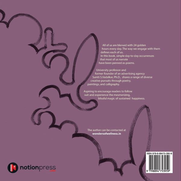 All of us are blessed with 24 golden hours every day. The way we engage with them de-fines each of us. In this book, simple day-to-day occurrences that most of us narrate have been penned as poems. University professor and former founder of an advertising agency Suniti S.Vadalkar, Ph.D., shares a range of diverse creative pursuits through poetry, paintings, and calligraphy. Aspiring to encourage readers to follow suit and experience the mesmerizing, blissful magic of sustained happiness.