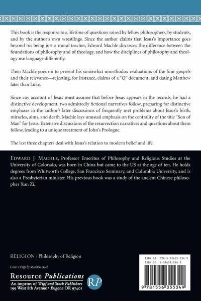 This book is the response to a lifetime of questions raised by fellow philosophers, by students, and by the author's own wrestlings. Since the author claims that Jesus's importance goes beyond his being just a moral teacher, Edward Machle discusses the difference between the foundations of philosophy and of theology, and how the disciplines of philosophy and theology use language differently. Then Machle goes on to present his somewhat unorthodox evaluations of the four gospels and their relevance--rejecting, for instance, claims of a ""Q"" document, and dating Matthew later than Luke. Since any account of Jesus must assume that before Jesus appears in the records, he had a distinctive development, two admittedly fictional narratives follow, preparing for distinctive emphases in the author's later discussions of frequently met problems about Jesus's birth, miracles, aims, and death. Machle lays unusual emphasis on the centrality of the title ""Son of Man"" for Jesus. Extensive discussions of the resurrection narratives and questions about them follow, leading to a unique treatment of John's Prologue. The last three chapters deal with Jesus's relation to modern belief and life.