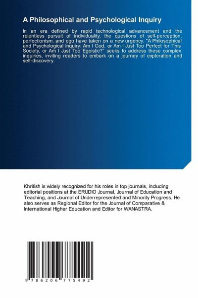 In an era defined by rapid technological advancement and the relentless pursuit of individuality, the questions of self-perception, perfectionism, and ego have taken on a new urgency. "A Philosophical and Psychological Inquiry: Am I God, or Am I Just Too Perfect for This Society, or Am I Just Too Egoistic?" seeks to address these complex inquiries, inviting readers to embark on a journey of exploration and self-discovery.