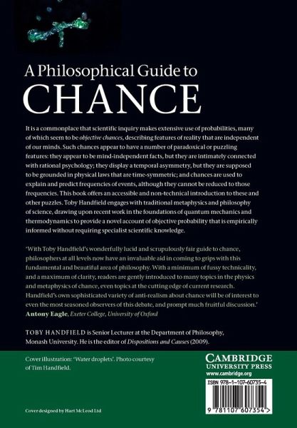 'With Toby Handfield's wonderfully lucid and scrupulously fair guide to chance, philosophers at all levels now have an invaluable aid in coming to grips with this fundamental and beautiful area of philosophy. With a minimum of fussy technicality, and a maximum of clarity, readers are gently introduced to many topics in the physics and metaphysics of chance, even topics at the cutting edge of current research. Handfield's own sophisticated variety of anti-realism about chance will be of interest to even the most seasoned observers of this debate, and prompt much fruitful discussion.' Antony Eagle, University of Oxford