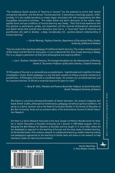 No longer confined to traditional institutions devoted to Talmudic studies, havruta work, or the practice of students studying materials in pairs, has become a relatively widespread phenomenon across denominational and educational settings of Jewish learning. However, until now there has been little discussion of what havruta text study entails and how it might be conceptualized and taught. This book breaks new ground from two perspectives: by offering a model of havruta text study situated in broader theories of interpretation and learning, and by treating havruta text study as composed of textual, interpersonal and intra-personal practices which can be taught and learned. We lay out the conceptual foundations of our approach and provide examples of their pedagogical implementation for the teaching of havruta text study. Included are illustrative lesson plans, teachers' notes and students' reflections, exercises for students, and other instructional materials for teaching core concepts and practices.