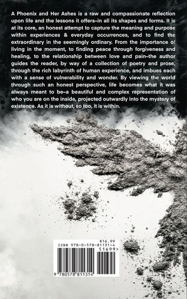 A Phoenix and Her Ashes is a raw and compassionate reflection upon life and the lessons it offers - in all its shapes and forms. It is at its core, an honest attempt to capture the meaning and purpose within experiences & everyday occurrences, and to find the extraordinary in the seemingly ordinary. From the importance of living in the moment, to finally peace through forgiveness and healing, to the relationship between love and pain - the author guides the reader, by way of a collection of poetry and prose, through the rich labyrinth of human experience, and imbues each with a sense of vulnerability and wonder. By viewing the world through such an honest spectrum, life becomes what it was always meant - a beautiful and complex representation of who you are on the inside, projected outwardly into the mystery of existence. As it is without, so too, it is within.