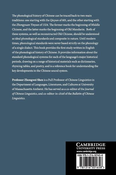 A comprehensive account of the phonological history of Chinese, exploring the development of its standard phonological systems over the past 2500 years. It will be a key reference work for historical linguists and phonologists in general, as well as being of particular interest to students and scholars of Chinese/Asian languages and their history.