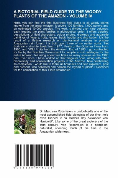 Here, we present the first illustrated field guide to all woody plants from the Amazon. The work is divided over nine volumes. Volume I focuses on the fruits of woody plants known from the Guayanan Shield. It offers 208 plates with line drawings and aquarelle paintings of 2,000 species of fruit. Volumes II - IX describe and depict botanical and ecological field characters of all woody plants known from the Amazon. They cover 109 families, 1,000 genera and ±5,000 species, each volume treating families in alphabetical order. This volume (IV) treats Gnetaceae through Lecythidaceae. This 'Flora Amazonica' is the result of my lifetime research on plant-animal relations in the Amazon. It is built upon 3 earlier works: 'Het Surinaams Vruchtenboek' (1977); 'Fruits of the Guianan Flora' (1985); and 'Wild Fruits from the Amazon' (2014-18). From 1986 on, I have worked on my magnum opus, along with other Amazon biodiversity projects. I now thank all botanists and field explorers, past and present, that collected and named the myriad of plants I had to examine in order to compile it.