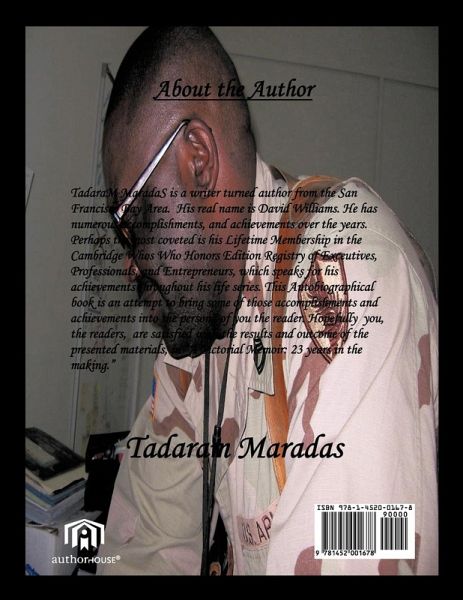 ' A Pictorial Memoir: 23 years in the Making,' is one of Maradas's best efforts yet as a published author. He has attempted to deliver to you , the reader, an accurate account of the many experiences that he has had, during one of the most difficult , yet greatest times in his life series. He has dedicated this work to his daughters, Aerial Channa'e Williams & Masyn Sabrina Williams for their untiring efforts in understanding why, ' Daddy wasn't there,' during some of the most important times in their lives. Hopefully this work will fill some of the voids in their hearts and minds, and give them insight to their father who loves them dearly.