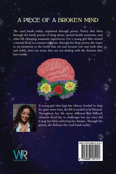 The cruel harsh reality, explained through poetry. Poetry that dives through the harsh process of drug abuse, mental health awareness, and other life changing traumatic experiences. For a young girl who created a mental block as a trauma response, through her deep poetry, she wants to set awareness to the world that not just because one may look okay and stable, does not mean they are not dealing with the demons they have inside.