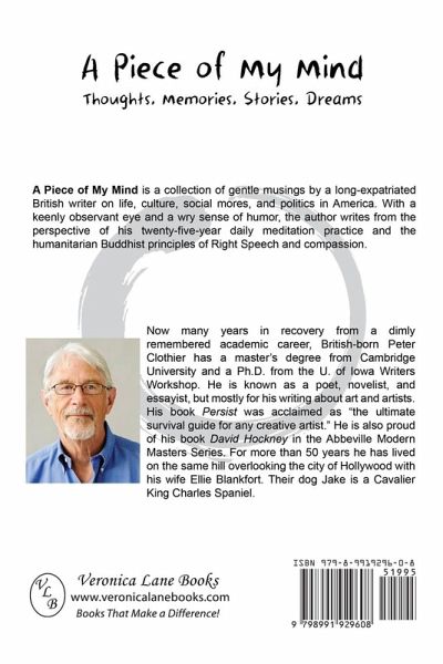 A Piece of My Mind is a collection of gentle musings by a long-expatriated British writer on life, culture, social mores, and politics in America. With a keenly observant eye and a keen sense of humor, the author writes from the perspective of his twenty-five-year daily meditation practice and the humanitarian Buddhist principles of Right Speech and compassion.