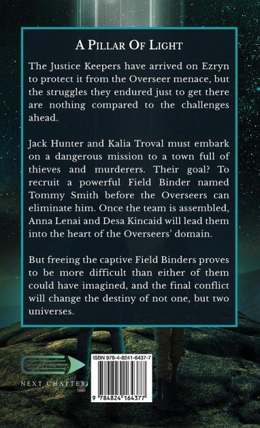 The Justice Keepers have arrived on Ezryn to protect it from the Overseer menace, but the struggles they endured just to get there are nothing compared to the challenges ahead. Jack Hunter and Kalia Troval must embark on a dangerous mission to a town full of thieves and murderers. Their goal? To recruit a powerful Field Binder named Tommy Smith before the Overseers can eliminate him. Once the team is assembled, Anna Lenai and Desa Kincaid will lead them into the heart of the Overseers' domain. But freeing the captive Field Binders proves to be more difficult than either of them could have imagined, and the final conflict will change the destiny of not one, but two universes.