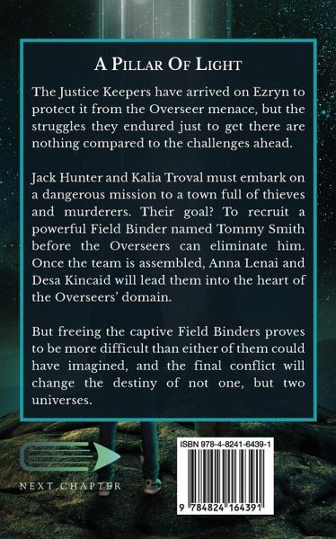The Justice Keepers have arrived on Ezryn to protect it from the Overseer menace, but the struggles they endured just to get there are nothing compared to the challenges ahead. Jack Hunter and Kalia Troval must embark on a dangerous mission to a town full of thieves and murderers. Their goal? To recruit a powerful Field Binder named Tommy Smith before the Overseers can eliminate him. Once the team is assembled, Anna Lenai and Desa Kincaid will lead them into the heart of the Overseers' domain. But freeing the captive Field Binders proves to be more difficult than either of them could have imagined, and the final conflict will change the destiny of not one, but two universes.