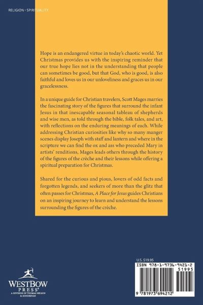 Hope is an endangered virtue in today's chaotic world. Yet Christmas provides us with the inspiring reminder that our true hope lies not in the understanding that people can sometimes be good, but that God, who is good, is also faithful and loves us in our unloveliness and graces us in our gracelessness. In a unique guide for Christian travelers, Scott Mages marries the fascinating story of the figures that surround the infant Jesus in that inescapable seasonal tableau of shepherds and wise men, as told through the bible, folk tales, and art, with reflections on the enduring meanings of each. While addressing Christian curiosities like why so many manger scenes display Joseph with staff and lantern and where in the scripture we can find the ox and ass who preceded Mary in artists' renditions, Mages leads others through the history of the figures of the crèche and their lessons while offering a spiritual preparation for Christmas. Shared for the curious and pious, lovers of odd facts and forgotten legends, and seekers of more than the glitz that often passes for Christmas, A Place for Jesus guides Christians on an inspiring journey to learn and understand the lessons surrounding the figures of the crèche.