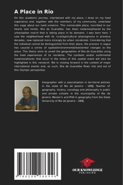 On this academic journey, intertwined with my place, I draw on my lived experience and, together with the members of my community, undertake this saga about our lived universe. This memorable place, inscribed in our hearts and minds, Ilha de Guaratiba, has been metamorphosed by the urbanization march that is taking place in its domains. I was born here. I saw the neighborhood with its rural/agricultural physiognomy in previous decades, now replaced more strongly by urban residential. Considering that the individual cannot be distinguished from their place, the process in vogue has caused a series of spatial/environmental/existential changes to the place. This thesis aims to unveil the geographies of Ilha de Guaratiba using the lived experiences of its residents. The symbolic and/or sentimental metamorphoses that occur in the midst of this spatial event will also be highlighted in this research. Rio is moving forward in the context of major international events and, as such, Ilha de Guaratiba flows into and out of this Olympic perspective.