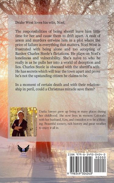 Drake West loves his wife, Noel. The responsibilities of being sheriff leave him little time for her and cause them to drift apart. A rash of arson and murders entwine him in a plot where the price of failure is everything that matters. Noel West is frustrated with being alone and too accepting of Banker Charles Steele's flirtations. He plays on Noel's loneliness and vulnerability. She's naïve to who he really is as he pulls her into a world of deception and lies. Charles Steele is obsessed with the sheriff's wife. He has secrets which will tear the town apart and prove he's not the upstanding citizen he claims to be. In a moment of certain death and with their relationship in peril, could a Christmas miracle save them?