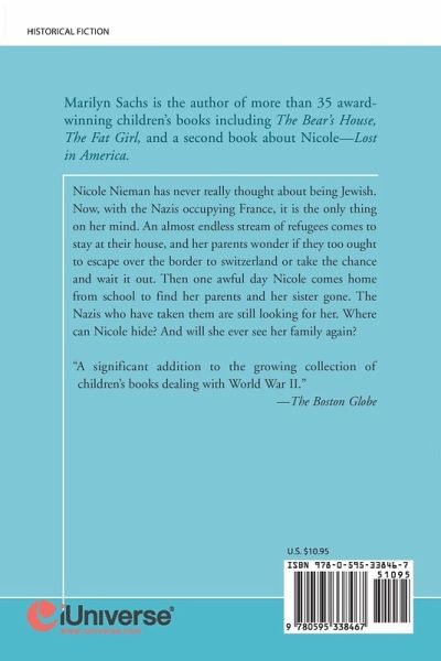Nicole Nieman has never really thought about being Jewish. Now, with the Nazis occupying France, it is the only thing on her mind. An almost endless stream of refugees comes to stay at their house, and her parents wonder if they too ought to escape over the border to switzerland or take the chance and wait it out. Then one awful day Nicole comes home from school to find her parents and her sister gone. The Nazis who have taken them are still looking for her. Where can Nicole hide? And will she ever see her family again? "A significant addition to the growing collection of children's books dealing with World War II." -The Boston Globe