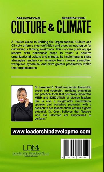 A Pocket Guide to Shifting the Organizational Culture and Climate offers a clear definition and practical strategies for cultivating a thriving workplace. This concise guide equips leaders with actionable steps to foster a positive organizational culture and climate. By implementing these strategies, leaders can enhance team morale, strengthen workplace dynamics, and drive greater productivity within their organizations.