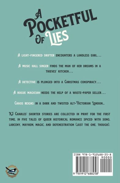 A light-fingered drifter encounters a landless earl... A music hall singer finds the man of her dreams in a thieves' kitchen... A detective is plunged into a Christmas conspiracy... A rogue magician needs the help of a waste-paper seller... Chaos reigns in a dark and twisted alt-Victorian London... KJ Charles' shorter stories are collected in print for the first time, in five tales of queer historical romance spiced with song, larceny, mayhem, magic, and defenestration (just the one, though). Contents: A Thief in the Night, The Rat-Catcher's Daughter, Masters in This Hall, A Queer Trade, The Price of Meat