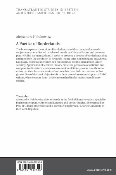 The book explores the notion of borderlands and the concept of nomadic subjectivity as manifested in selected novels by Chicana/Latina and contemporary Polish women authors. It seeks to propose a poetics of borderlands that emerges from the condition of nepantla (being torn, not belonging anywhere). Language, collective identities and motherhood are the main issues under scrutiny. Application of feminist literary criticism, postcolonial criticism and comparative literature studies in examination of literary works reveals interesting parallels between works of authors that have little in common at first glance. One of the book objectives is to draw attention to contemporary Polish writers, whose oeuvre is not widely researched in the mainstream literary studies.