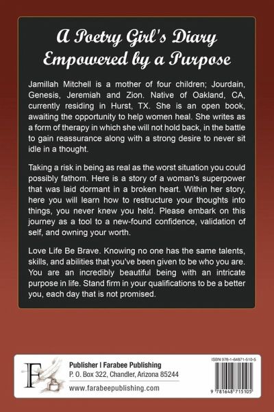Love life be brave. Fear not, you no longer have to wallow in the misery of feeling like life is over. You have a purpose in you, that you have had to fight for. You've suffered, you've learned, you've changed. Go with that, as you experience this growth of super-power, I never knew I carried. I am the light, at the of the fear I have held onto, which is why it is now that I am moving out of my own way. When life had meaning, but no direct path, of where I wanted to build my future. My eyes have been opened to innovative ideas, opportunities, and confidence I hesitated to show. God wants me to shine, he believes I can do this. Here I am, I am here. I have very little to lose, everything to gain. With trust, faith, and effort. I will finish the process to encourage those lost, hurt, folded and given up. I have been designed to bring awareness to where you're going. There is a choice to make in life. Will you choose to live? Or, will you live by default? We have been given the necessary tools to beat adversity. To overcome hurt, failure, unforgiveness. Smile when it hurts, cry when the pressure builds. Where there is confusion, your thoughts become too loud. Silence life with empowered, positive, motivational thoughts to encourage yourself when you feel alone. Reminding yourself, "you are enough."