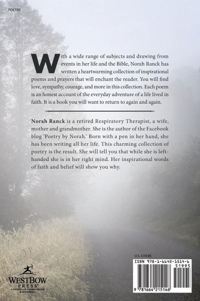 With a wide range of subjects and drawing from events in her life and the Bible, Norah Ranck has written a heartwarming collection of inspirational poems and prayers that will enchant the reader. You will find love, sympathy, courage, and more in this collection. Each poem is an honest account of the everyday adventure of a life lived in faith. It is a book you will want to return to again and again.