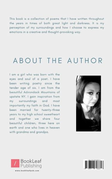 This book is a collection of poems that I have written throughout the years in times of both great light and darkness. It is my perception of my surroundings and how I choose to express my emotions in a creative and thought-provoking way.