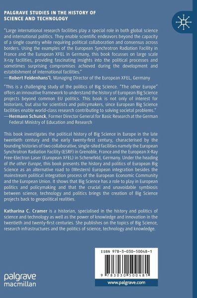 This book investigates the political history of Big Science in Europe in the late twentieth century and the early twenty-first century, characterised by the founding histories of two collaborative, single-sited facilities namely the European Synchrotron Radiation Facility (ESRF) in Grenoble, France and the European X-Ray Free-Electron Laser (European XFEL) in Schenefeld, Germany. Under the heading of the other Europe, this book presents the history and politics of European Big Science as an alternative road to (Western) European integration besides the mainstream political integration process of the European Economic Community and the European Union. It shows that Big Science has a role to play in European politics and policymaking and that the crucial and unavoidable symbiosis between science, technology and politics brings the creation of Big Science projects back to geopolitical realities.