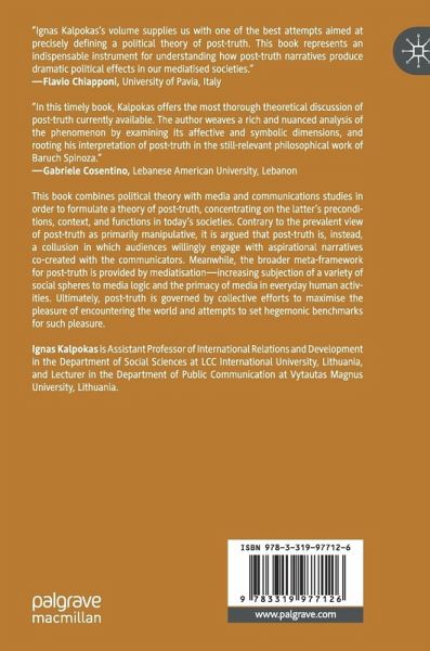 "In A Political Theory of Post-Truth, Ignas Kalpokas offers a nuanced and lucid description of the conditions and content of a post-truth world, drawing particularly on the work of the seventeen-century philosopher Baruch Spinoza with support from the twentieth-century post-structuralist Gilles Deleuze. Going beyond cliches and superficial diagnosis, this is a perceptive, yet alarming, vision of an ever-more embedded post-truth future ... ." (Roderick Howlett, LSE Review of Books, blogs.lse.ac.uk, February, 2019)