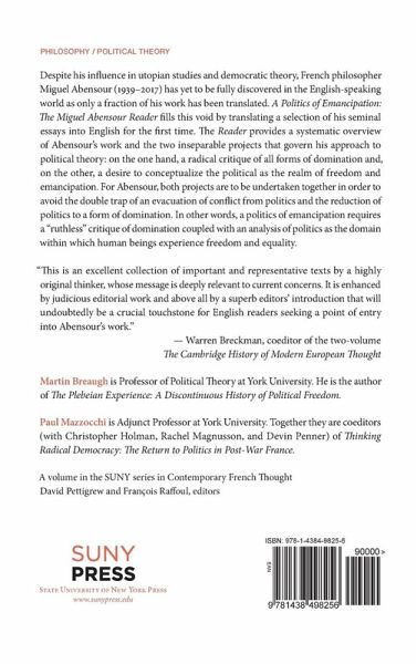 A systematic overview of French Philosopher Miguel Abensour's groundbreaking work and the two inseparable projects that govern it: a radical critique of all forms of domination and a search for a politics of emancipation.