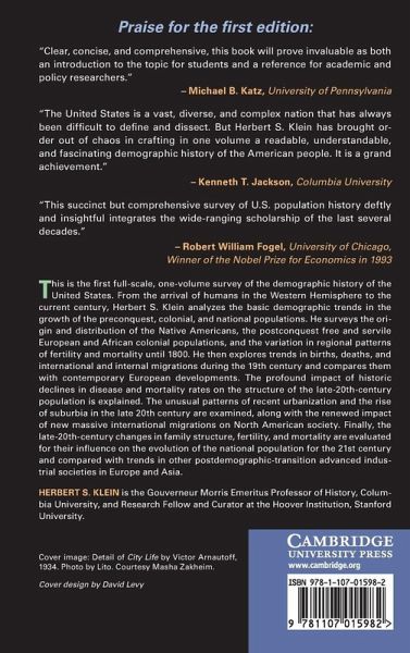The first full-scale, one-volume survey of the demographic history of the United States has been fully updated here. From the arrival of humans in the Western Hemisphere to the current century, Klein analyses the basic demographic trends in the growth of the pre-conquest, colonial and national populations. From the origin and distribution of the Native Americans to late twentieth century changes in family structure, fertility and mortality, this updated edition incorporates recent research, including data from the 2010 census. In this definitive study, Klein explores regional patterns of fertility and mortality, trends in births, deaths and international and internal migrations, comparing them with contemporary European developments. The profound impact of historic declines in disease and mortality rates on the population structure of the late-twentieth century is explained, while the more recent urbanisation and rise of suburbia are examined within the context of new massive international migrations on North American society.