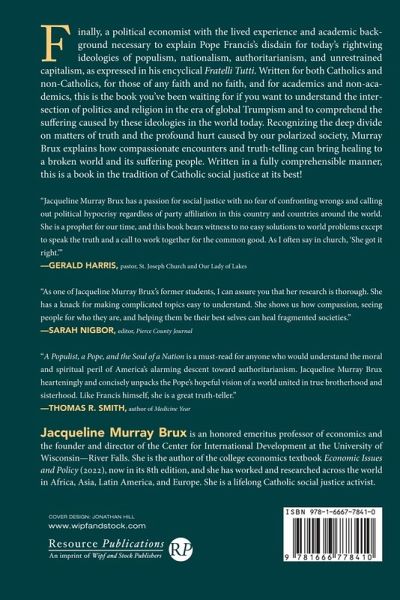 Finally, a political economist with the lived experience and academic background necessary to explain Pope Francis's disdain for today's rightwing ideologies of populism, nationalism, authoritarianism, and unrestrained capitalism, as expressed in his encyclical Fratelli Tutti. Written for both Catholics and non-Catholics, for those of any faith and no faith, and for academics and non-academics, this is the book you've been waiting for if you want to understand the intersection of politics and religion in the era of global Trumpism and to comprehend the suffering caused by these ideologies in the world today. Recognizing the deep divide on matters of truth and the profound hurt caused by our polarized society, Murray Brux explains how compassionate encounters and truth-telling can bring healing to a broken world and its suffering people. Written in a fully comprehensible manner, this is a book in the tradition of Catholic social justice at its best!