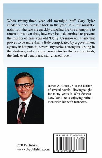 When twenty-three year old nostalgia buff Gary Tyler suddenly finds himself back in the year 1939, his romantic notions of the past are quickly dispelled. Before attempting to return to his own time, however, he is determined to prevent the murder of nine year old 'Dolly' Czarnowski, a task that proves to be more than a little complicated by a government agency in hot pursuit, several mysterious strangers lurking in the shadows, and a jealous competitor for the heart of Sarah, the dark-eyed beauty and star-crossed lover. About the Author: James A. Costa Jr. is the author of several novels. Having taught for many years in West Seneca, New York, he is enjoying retirement with his wife Jeannette.
