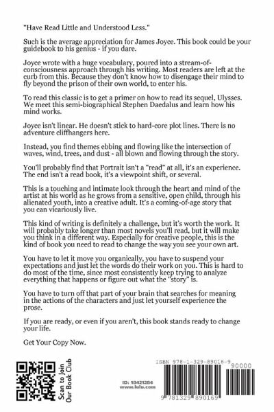 "Have Read Little and Understood Less." Such is the average appreciation for James Joyce. This book could be your guidebook to his genius - if you dare. Joyce wrote with a huge vocabulary, poured into a stream-of-consciousness approach through his writing. Most readers are left at the curb from this. Because they don't know how to disengage their mind to fly beyond the prison of their own world, to enter his. To read this classic is to get a primer on how to read its sequel, Ulysses. We meet this semi-biographical Stephen Daedalus and learn how his mind works. Joyce isn't linear. He doesn't stick to hard-core plot lines. There is no adventure cliffhangers here. Instead, you find themes ebbing and flowing like the intersection of waves, wind, trees, and dust - all flowing through the story. If you are ready, or even if you aren't, this book stands ready to change your life. Scroll back up and get your copy now.