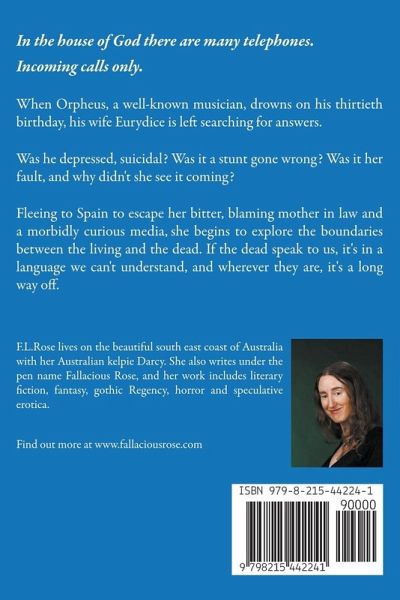 In the house of God there are many telephones. Incoming calls only. When Eurydice's husband Orpheus, a well-known musician, disappears from a party boat in Sydney Harbour on his thirtieth birthday and is found, drowned, three days later, her grief is all-consuming. But she's also left searching for answers. Was Orpheus depressed, suicidal? Was it a stunt gone wrong? Was it her fault, and why didn't she see it coming? Fleeing her bitter, blaming mother in law and a morbidly curious media, Eurydice travels to Spain. A stranger adrift in the medieval splendour of Cordoba and Sevilla, she begins to explore the boundaries between the living and the dead. If the dead speak to us, it's in a language we can't understand, and wherever they are, it's a long way off. This is a story about grief, death, and the unbreakable bonds of passionate love.