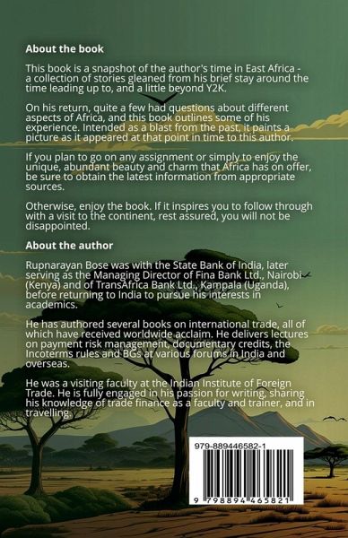 This book is a snapshot of the author's time in East Africa - a collection of stories gleaned from his brief stay around the time leading up to, and a little beyond Y2K. On his return, quite a few had questions about different aspects of Africa, and this book outlines some of his experience. Intended as a blast from the past, it paints a picture as it appeared at that point in time to this author. If you plan to go on any assignment or simply to enjoy the unique, abundant beauty and charm that Africa has on offer, be sure to obtain the latest information from appropriate sources. Otherwise, enjoy the book. If it inspires you to follow through with a visit to the continent and love nature, rest assured, you will not be disappointed.