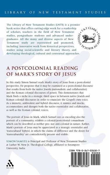 This unique contribution to Markan studies reads Mark's story of Jesus from a postcolonial perspective. It proposes that Mark need not necessarily be treated in an oversimplified polarity as an anti- or pro-colonial discourse. Instead it may be treated as a postcolonial discourse, i.e. as a hybrid discourse that accommodates and disrupts both the native Jewish and the Roman colonial discourses of power. It shows that Mark accommodates itself into a strategic third space in between the variegated native Jewish and the Roman colonial discourses in order to enunciate its own voice. As an ambivalent and hybrid discourse it mimics and mocks, accommodates and disrupts both the Jewish as well as the Roman colonial voices. The portrait of Jesus in Mark, which Samuel shows to be encoding also the portrait of a community, exhibits a colonial/ postcolonial conundrum which can neither be damned as pro- nor be praised as anti-colonial in nature. Instead the portrait of Jesus in Mark may be appreciated as a strategic essentialist and transcultural hybrid, in which the claims of difference and the desire for transculturality are both contradictorily present and visible. In showing such a portrait and invoking a complex discursive strategy Mark as the discourse of a subject community is not alone or unique in the Graeco-Roman world. A number of discourses-historical, creative novelistic and apocalyptic-of the subject Greek and Jewish communities in the eastern Mediterranean under the imperium of Rome from the second century BCE to the end of the first century CE exhibit very similar postcolonial traits which one may add to be not far from the postcolonial traits of a number of postcolonial creative writings and cultural discourses of the colonial subject and the dominated post-colonial communities of our time.