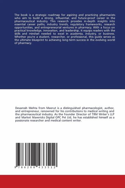 The book is a strategic roadmap for aspiring and practicing pharmacists who aim to build a strong, influential, and future-proof career in the pharmaceutical industry. This research provides in-depth insights into essential career paths, industry trends, regulatory frameworks, research opportunities, and entrepreneurial ventures in pharmacy. With a focus on practical knowledge, innovation, and leadership, it equips readers with the skills and mindset needed to excel in academia, industry, or business. Whether you're a student, researcher, or professional, this guide serves as the ultimate blueprint to achieving long-term success in the evolving world of pharmacy.
