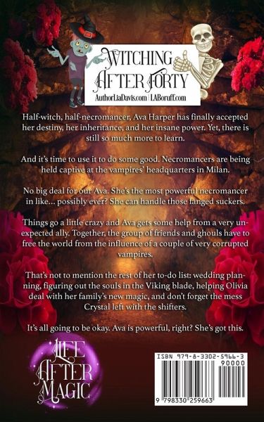 Half-witch, half-necromancer, Ava Harper has finally accepted her destiny, her inheritance, and her insane power. Yet, there is still so much more to learn. And it's time to use it to do some good. Necromancers are being held captive at the vampires' headquarters in Milan. No big deal for our Ava. She's the most powerful necromancer in like... possibly ever? She can handle those fanged suckers. Things go a little crazy and Ava gets some help from a very unexpected ally. Together, the group of friends and ghouls have to free the world from the influence of a couple of very corrupted vampires. That's not to mention the rest of her to-do list: wedding planning, figuring out the souls in the Viking blade, helping Olivia deal with her family's new magic, and don't forget the mess Crystal left with the shifters. It's all going to be okay. Ava is powerful, right? She's got this. The Witching After Forty series is part of the Life After Magic World.