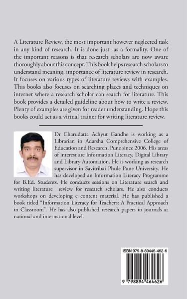 A Literature Review, the most important however neglected task in any kind of research. It is done just as a formality. One of the important reasons is that research scholars are now aware thoroughly about this concept. This book helps research scholars to understand meaning, importance of literature review in research. It focuses on various types of literature reviews with examples. This books also focuses on searching places and techniques on internet where a research scholar can search for literature. This book provides a detailed guideline about how to write a review. Plenty of examples are given for reader understanding. Hope this books could act as a virtual trainer for writing literature review.