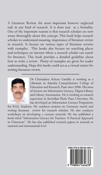 A Literature Review, the most important however neglected task in any kind of research. It is done just as a formality. One of the important reasons is that research scholars are now aware thoroughly about this concept. This book helps research scholars to understand meaning, importance of literature review in research. It focuses on various types of literature reviews with examples. This books also focuses on searching places and techniques on internet where a research scholar can search for literature. This book provides a detailed guideline about how to write a review. Plenty of examples are given for reader understanding. Hope this books could act as a virtual trainer for writing literature review.
